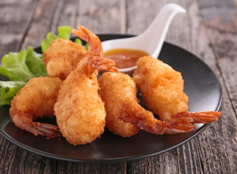 camarão empanado em forma de coxinha.
