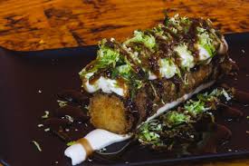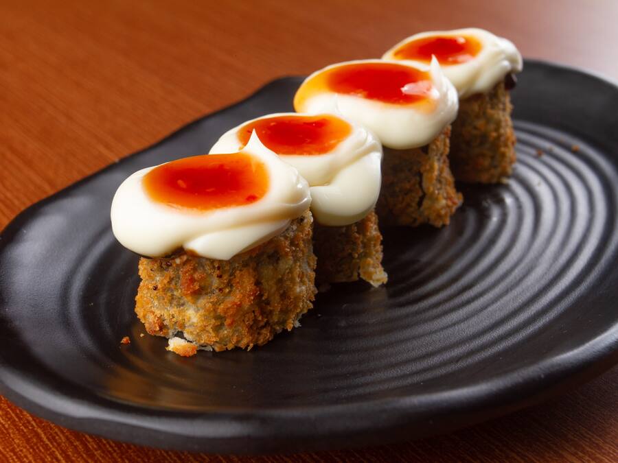 maki frito crocante com recheio cru por dentro.